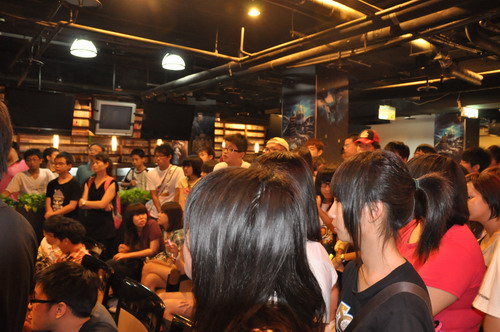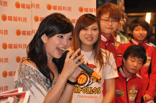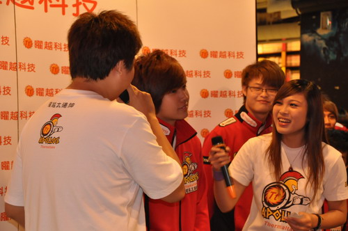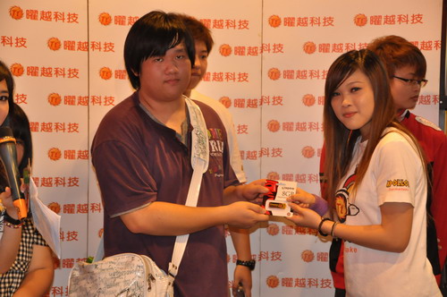 當天(7/17)的人潮相當踴躍,小小的場地,大約湧進了近兩百個人(粉絲和參加測試挑戰賽的參賽者),將場地擠得水洩不通。不過由於雅典娜從未正式主持過這種場合,開始前,雅典娜非常的緊張,深怕會把場子搞得很冷,還搬了救兵來幫忙,希望在”雙箭頭”一搭一唱之下,可以讓場面活潑起來。但顯然雅典娜多慮了,因為除了當她一出場粉絲們就紛紛拿起相機來狂照外,在她一一介紹選手出場的過程中,粉絲們也相當捧場地給予相當多的喝采,讓她當場吃了一顆定心丸。