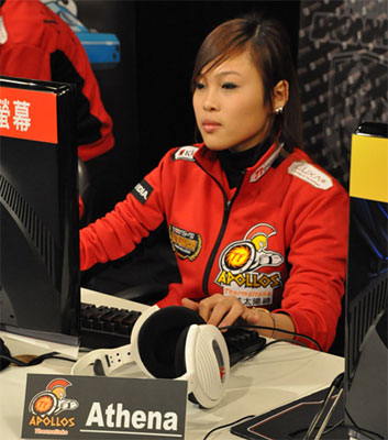 在SF比賽項目地圖「阿富汗」,曜越太陽神指派上場的女選手Athena雅典娜