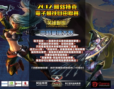 繼續閱讀台北,台灣 – 2012年2月21日 -國內首屈一指的電子競技平台──「阿茲特克聯盟」日前宣布舉辦《英雄聯盟》自由聯賽,由國內玩家自由報名,競賽畫面將於 2 月 21 日起每週二~五晚間 8 點進行線上直播,第一場賽事將於 20...
